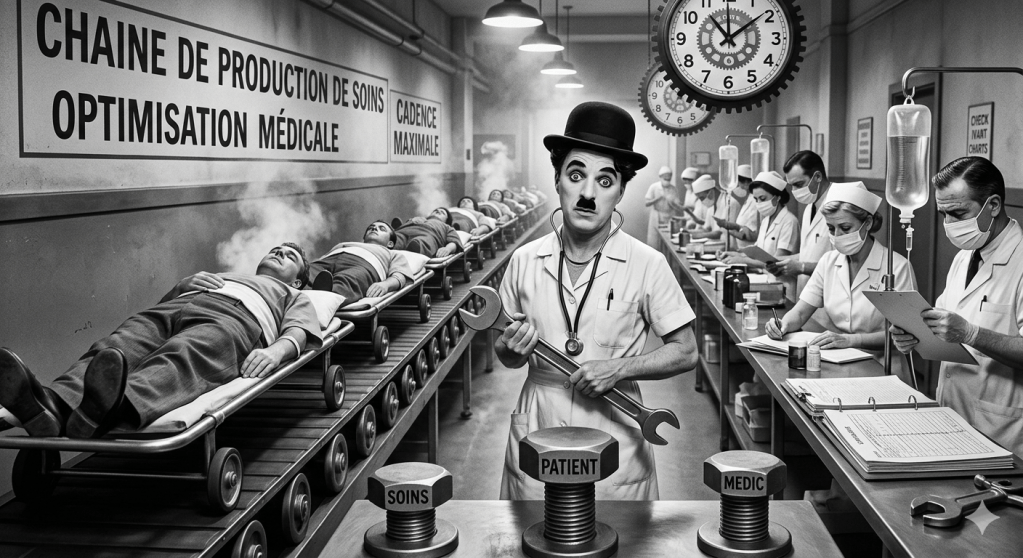 Vous voyez Chaplin dans les Temps Modernes sur son tapis roulant à visser sans fin? Ben on en est là. Si vous ne me croyez pas, demander à n’importe quel soignant.